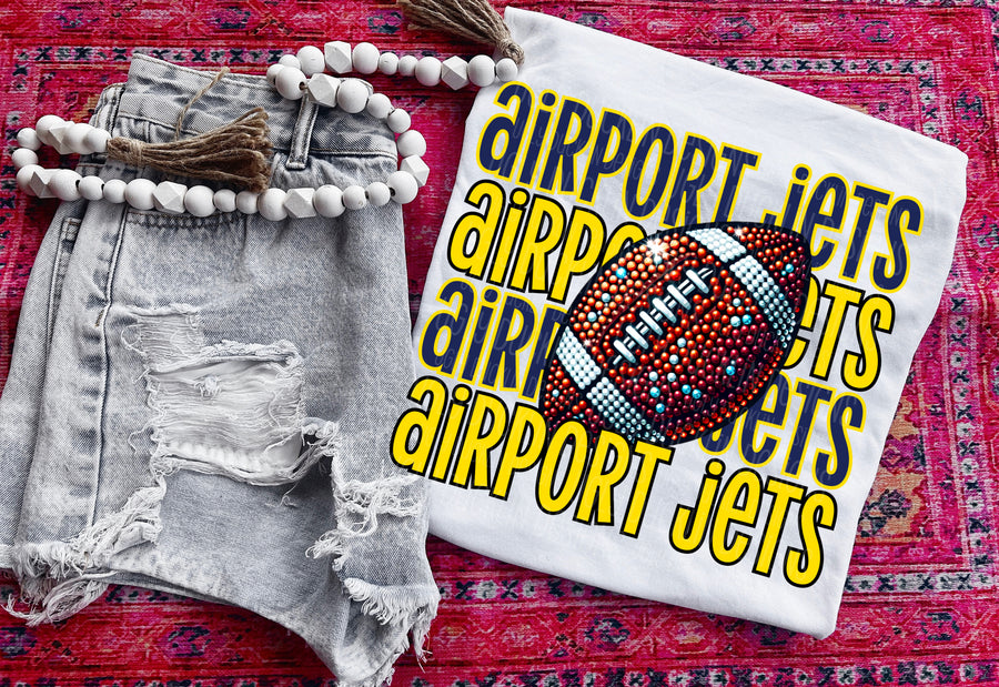 Airport Jets (Gold) with Football DTF Print
