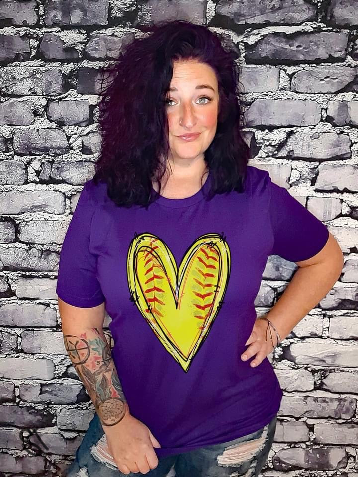 Hand Drawn Softball Heart Screen Print SPORTS66