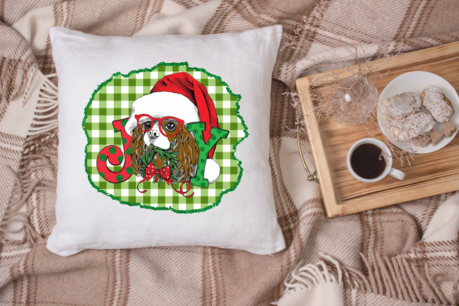 King Charles Spaniel Joy Green Plaid and Glitter Christmas Dog Mom Digital Design File