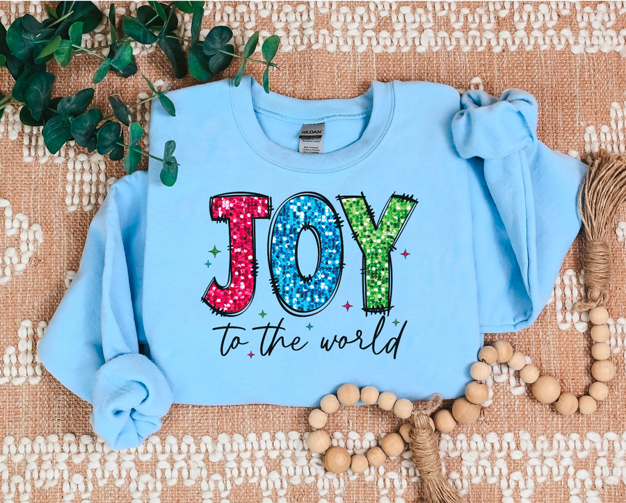 Joy to The World Faux Glitter DTF Print
