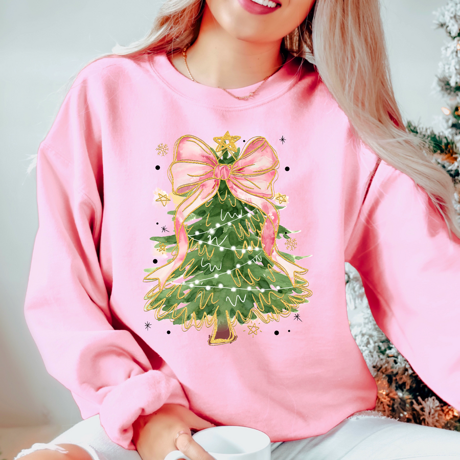 Sparkly Pink Coquette Bow Tree DTF Print