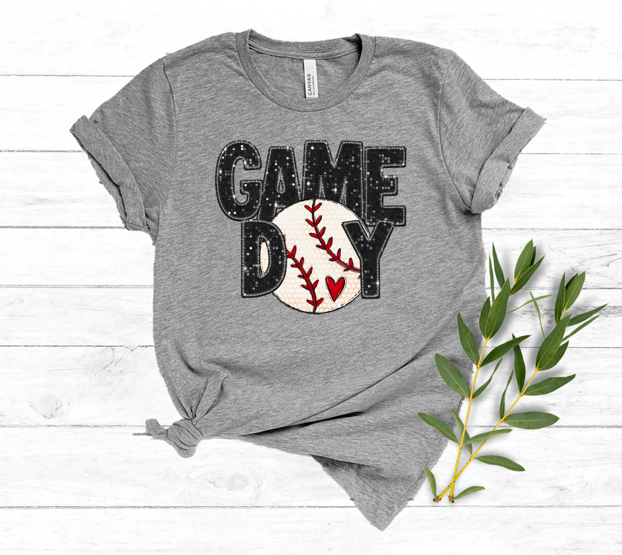 Game Day Ball with Heart Faux Glitter DTF Print